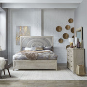 Liberty Furniture Belmar Queen Panel Bed in Washed Taupe and Silver Champagne