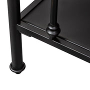 Liberty Furniture Vintage Series Open Nightstand in Black 179-BR61-B. This industrial open night stand is the perfect way to enhance your room with a classic vintage style. The distressed metal finish paired with turned spindles create a truly unique look. This night stand comes in many color options, making it universal and adaptable to any space, while offering a unique designer look.