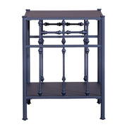 Liberty Furniture Vintage Series Open Nightstand in Navy 179-BR61-N. This industrial open night stand is the perfect way to enhance your room with a classic vintage style. The distressed metal finish paired with turned spindles create a truly unique look. This night stand comes in many color options, making it universal and adaptable to any space, while offering a unique designer look.