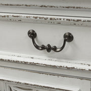 Liberty Furniture Magnolia Manor Hall Buffet in Antique White 244-HB6642. Blending of European influences makes Magnolia Manor a truly unique style for any living space. Warm antique finishes and artistic distressing along with grand scale a group to be passed to generations.