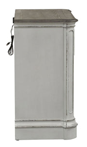Liberty Magnolia Manor 3 Drawer Bedside Chest in Antique White 244-BR64. Blending of European influences makes Magnolia Manor a truly unique style for any living space. Warm antique finishes and artistic distressing along with grand scale a group to be passed to generations.