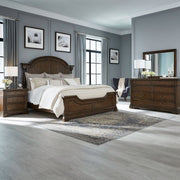 Liberty Furniture Arden Road 8 Drawer Dresser in Satin Cherry 512-BR31. In a world of fleeting trends, the Arden Road 8 drawer dresser stands as a beacon of enduring elegance. Crafted with excellence using Poplar solids and Rustic Alder veneers, this dresser features a Satin Cherry finish. The dresser showcases column pilasters that flow into block feet. The top drawers offer clean styling with a flat cut drawer front, while the bottom drawers feature bead molding accents that frame each drawer. The top 2 drawers have premium felt lining, while the bottom 2 drawers are lined with cedar. Soft closing drawer guides adds a touch of elegance. The dresser is accented with Antique Brass bail and knob hardware. When you invite the Arden Road 8 drawer dresser into your space, you're not just selecting furniture, you're curating a legacy that will grace your family for years to come. With the Arden Road collection, each piece is an investment. A piece of history waiting to be passed down through the generations. A living testament to the art of design, comfort, and storytelling.