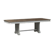 Liberty Furniture Abbey Park Trestle Dining Table in Antique White 520-DR-TRS. Blending of European traditional design influences makes Abbey Park a truly unique style for any living space. Warm antique finishes and artistic distressing along with grand scale makes Abbey Park a group to be passed to generations.