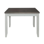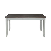 Liberty Furniture Brook Bay Rectangular Leg Table in Textured White. Feel at home with the Brook Bay rectangular table set. Crafted with excellence using rubberwood solids and mindy veneers, this table features a two-tone Carbon Gray and Textured White finish. The table has a fixed top that is supported by tapered block legs. A large full extension hidden drawer is on both sides of the table. The drawer is felt lined and has a center divider creating two storage compartments. Feel comfortable and elegant at the same time with the Brook Bay rectangular table set.