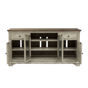 Liberty Morgan Creek Entertainment TV Stand in Antique White Finish with Wire Brushed Tobacco Accents, 68W x 19D x 34H, 191lbs.