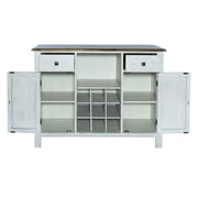 Liberty Furniture Carolina Crossing Server in White 186W-SR4836. Enhance your space with the Carolina Crossing server in white. Crafted of rubberwood solids, this piece features a two-toned white and honey finish, bottom case dust proofing, two fully stained interior drawers, removeable nine bottle wine storage, two wood framed doors with an adjustable shelf behind each, and is accented by antique brass square knob hardware. This server is available in multiple finishes and the heavy distressing translates well into any decor.