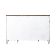 Liberty Furniture River Place Breakfront Server in Riverstone Gray & Tobacco 237G-SR6642. Designed to entice a sense of calm and tranquility into interior spaces, the River Place breakfront server strikes the perfect balance of life on the coast and a comfy home tucked away in the hills. Crafted with Pine solids and veneers, this piece features a heavily distressed Riverstone Grey and Tobacco finish. The name says it all as this server offers breakfront styling. A large center drawer is flanked by two smaller drawers. All the drawers have premium felt lining and the added luxury of soft closing drawer guides. One removable felt-lined silverware tray is included. The center of the case showcases two wood framed doors with high-low veneer patterns that are flanked by open storage compartments with two fixed shelves. The doors open to reveal one large fixed shelf. The high-low veneer pattern of the top and side panels flow nicely into the angled tapered feet. Accented with custom Antique Pewter knob hardware, the River Place breakfront server creates an inviting airy atmosphere in your home while providing comfort in your own private getaway.