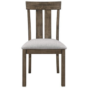 Crown Mark Quincy Sidet Chair (Set of 2) in Light Brown 2131S. With an easy-going light brown finish and classic style, this dining room collection makes a versatile addition to a breakfast nook or informal dining area. Available in regular and counter height, pair the trestle tables with matching benches and chairs.
