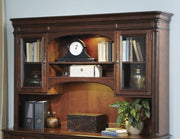 Liberty Furniture is a dedicated provider of all wood products including bedroom, dining, entertainment, occasional and home office categories. Their products are developed using years of knowledge coupled with a vision of the future. They use high-quality wood with the best veneers and conduct an extensive, detail-oriented finishing process, including some level of distressing. In addition, they build their products with high-level hardware to ensure durability. They are a company founded on the core principle of service. They value the relationships with their customers. Liberty Furniture is here to serve you… today, tomorrow, and for many years to come. Traditional in style this grandly scaled Brayton Manor Hutch is fully functional and can be paired with the coordinating credenza for a full wall unit. Two framed glass doors are paired with arched accents and two shelves with touch lighting to create a focal point for your office. Stacked crown mouldings are highlighted by the rich cognac finish of the case and accented by the dark antique looking hardware. Add this piece to your home office for a fully functioning and organized space.