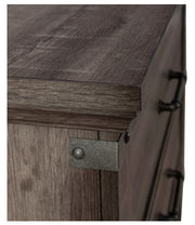 Liberty Furniture Lakeside Haven 5 Drawer Chest in Brownstone 903-BR41. Hit the pause button on your hectic life with the Lakeside Haven five drawer chest. Crafted with excellence using a rubberwood solid frame with 3D Paper Laminate, this piece features a Brownstone finish. Hammered metal corner accent plates along with wood framed drawer fronts and Antique Pewter bar pull hardware add for visual appeal. Clean lines and block feet round out the rustic, cottage look. The urban living design and the rustic charm or cottage appeal of the Lakeside Haven five drawer chest offer style, substance, and handcrafted character.