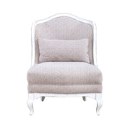 Liberty Furniture Magnolia Manor Upholstered Accent Chair in Antique White 244-ACH15. Sitting pretty in the Magnolia Manor accent chair. Features Vintage French Country (Chateau) styled wood framed accent chair fully upholstered in a textured linen look fabric. Includes bolster pillow for added comfort. Perfect chair for any room in the house from the living to the bedroom sure to add a touch of class.