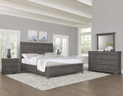 Vaughan Bassett Vista King Sleigh Storage Bed in Grey Oak. Designed to invoke a sense of nostalgia, Vista presents a classic design with clean gentle lines and timeless elements bathed in a warm cherry finish. Crafted of poplar solids and cherry veneers, this Louie Philippe inspired suite features a felt-lined drawer hidden behind the shaped moulding at the top of the dresser and chest. The storage pieces include burnished brass drawer pulls with smooth finished drawer interiors and self-closing steel ball bearing guides. The sleigh bed offers an old world charm with its shaped bed post and heavy cap rail while the mansion bed drifts towards a more relaxed rustic feel featuring corbel overlays and curved top cap rail.